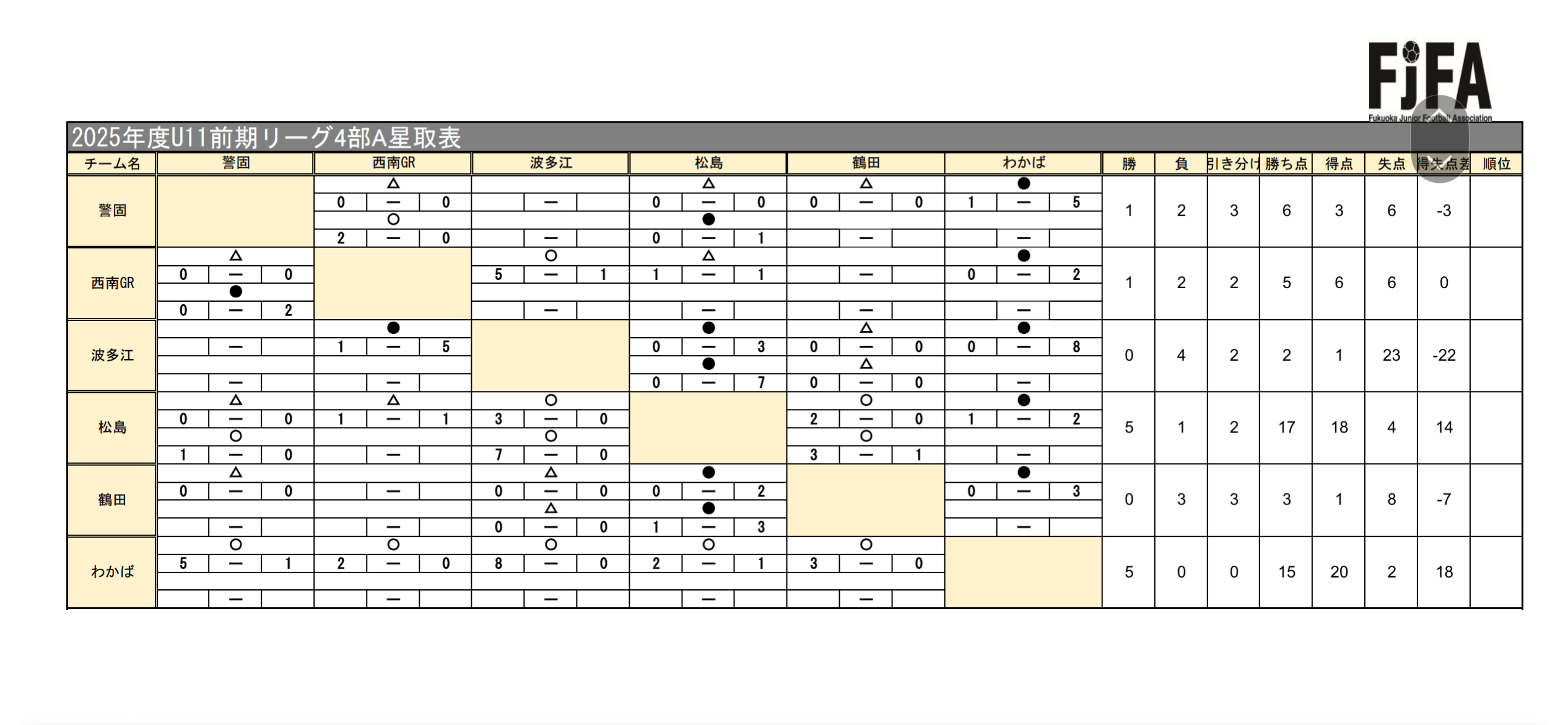 U11 福岡地区リーグ 第4節-第6節