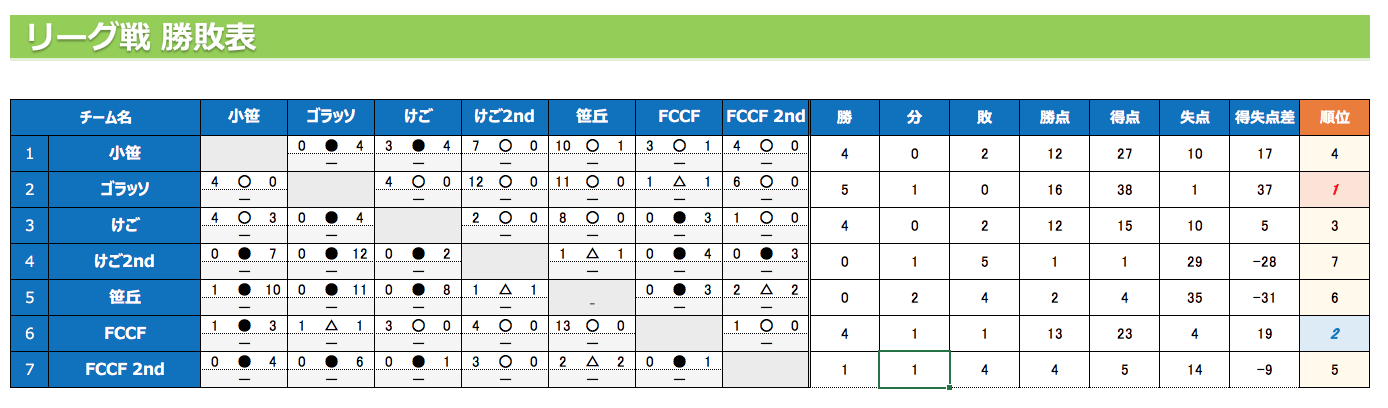 中央区内リーグ 1st 3位・2nd7位の結果となり、1st チームがチャンピオンシップ出場を決めました! おめでとう!