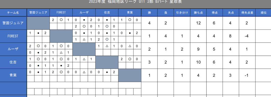 U11A 福岡地区リーグ 後期 3部 第5・6節