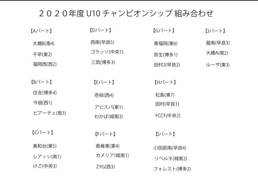 2020年度 U10 チャンピオンシップの組み合わせが決定しました。