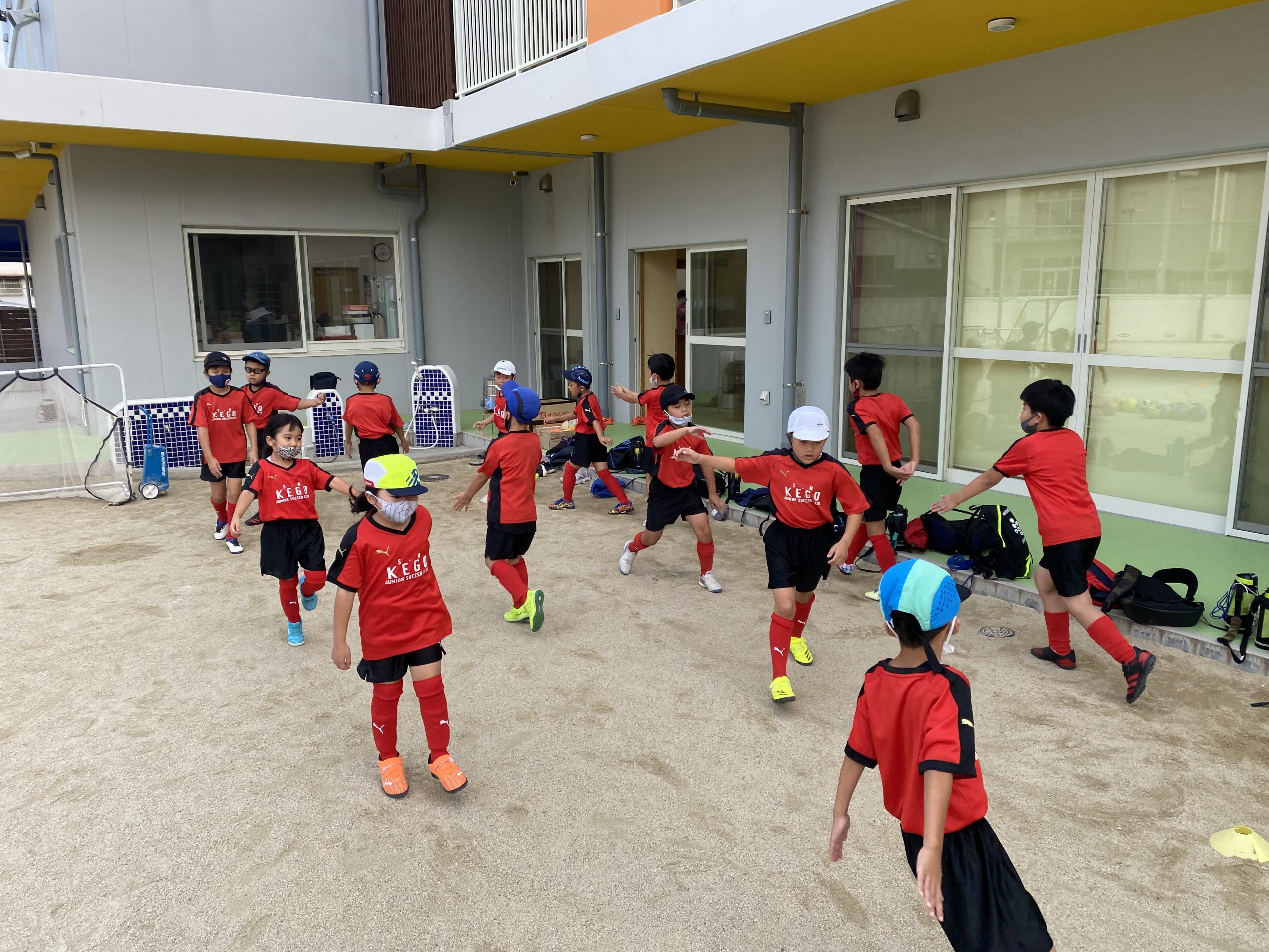 感染状況と施設制限(公共施設使用不可)を考慮し、対外試合は控えました。
