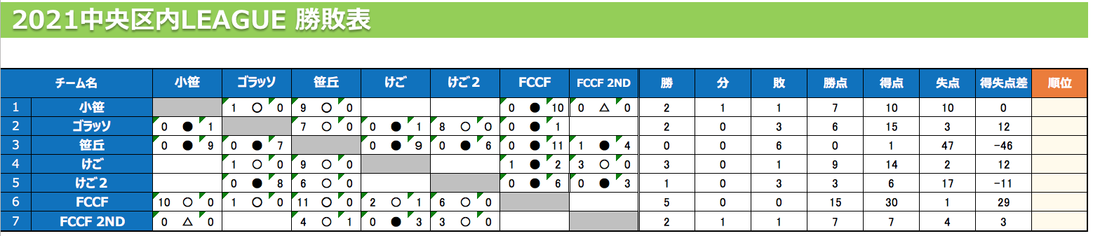 11/21(日)U10 中央区内リーグ 2日目