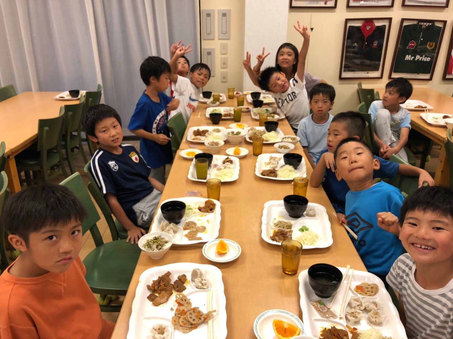 施設内で食事・入浴・洗濯・宿題を行いました。食事に関してアレルギーのある選手は、各個別の物をスタッフと一緒に取っています。そういった選手の為にも宿舎内はお菓子禁止にしました。