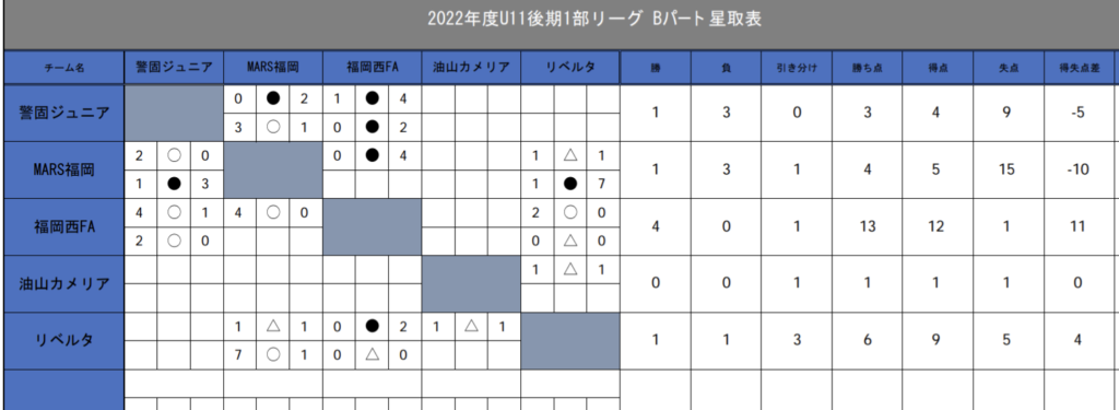 (追加:福岡西FA 0-0 カメリア)