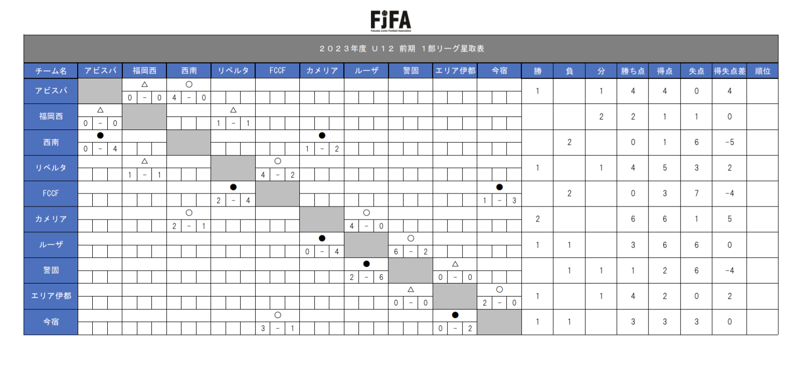 福岡地区リーグ U12 前期 1部