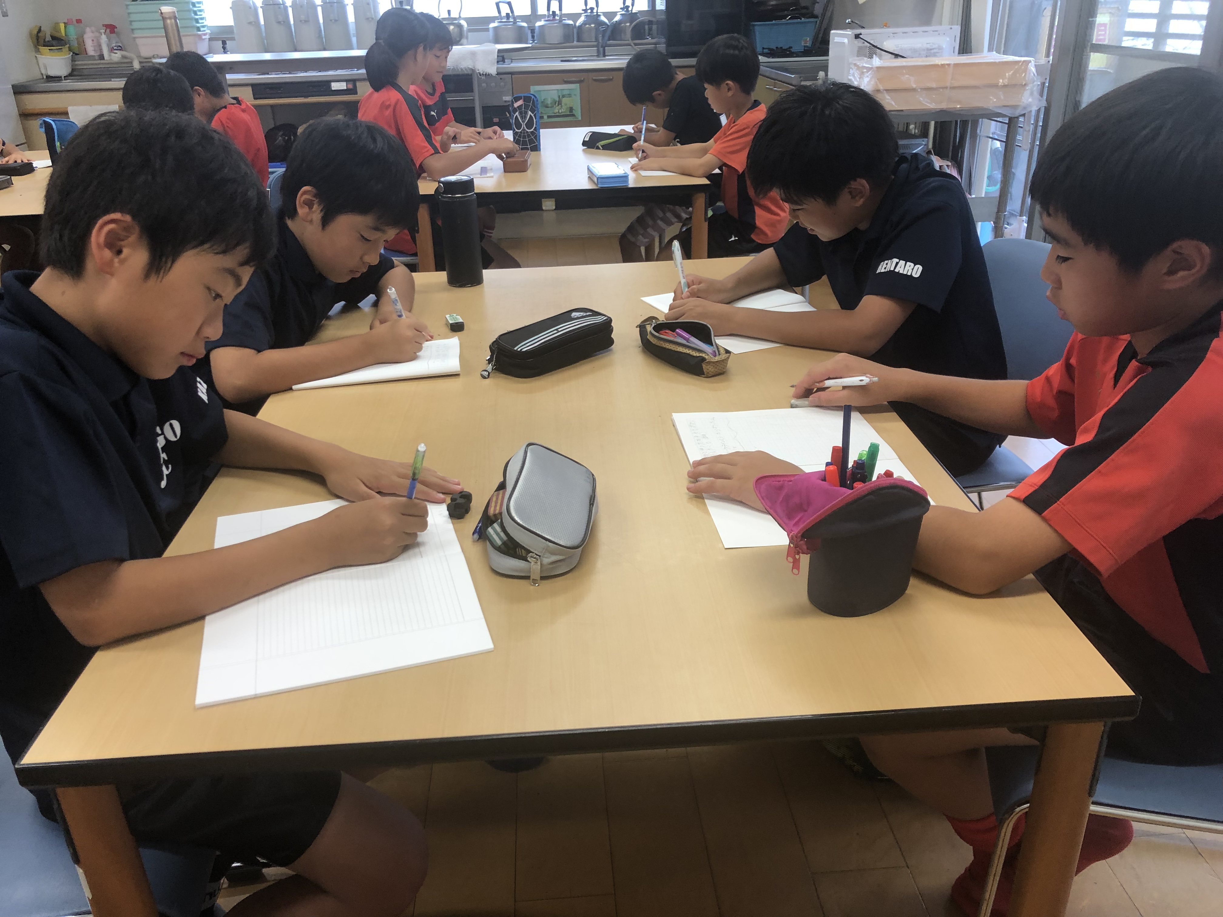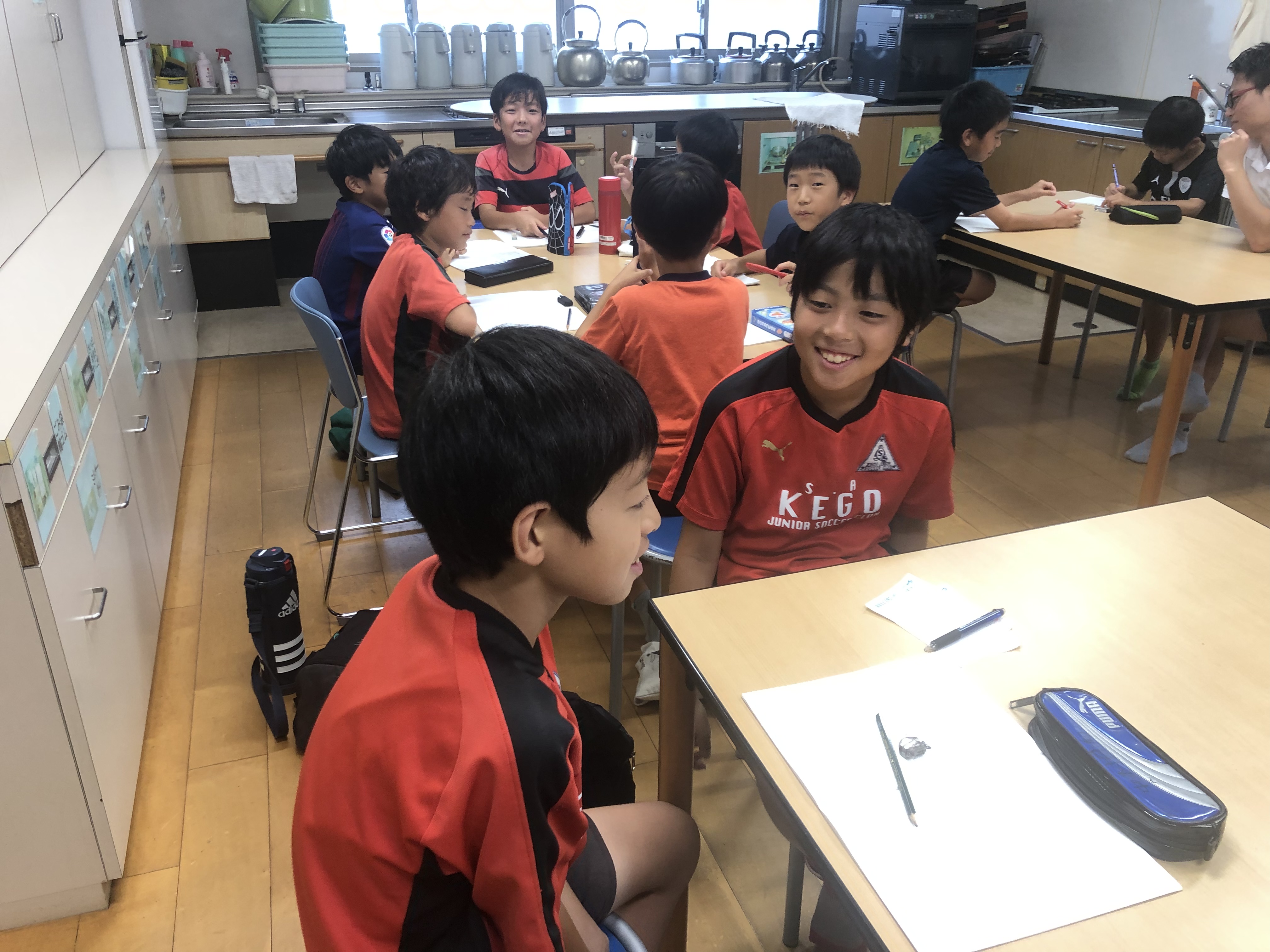 日頃このような時は、こちら側から各学年のチーム戦術の話などをするのですが、この日はいくつかの質問に個人・グループで考えてもらい発表をしてもらいました。
