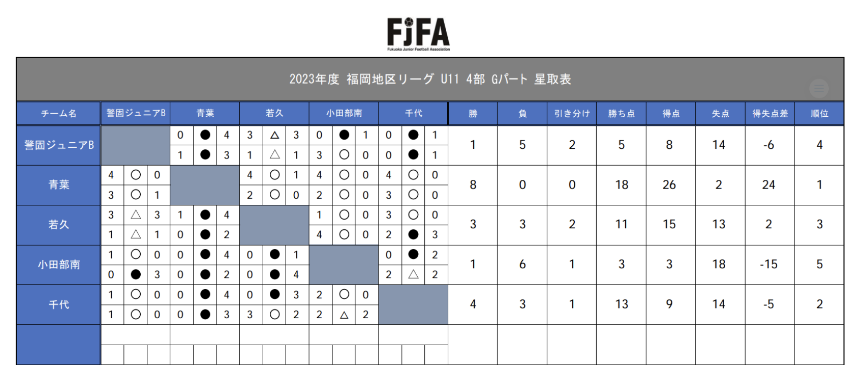 第7節 小田部南 3-0 〇(3-0.0-0)