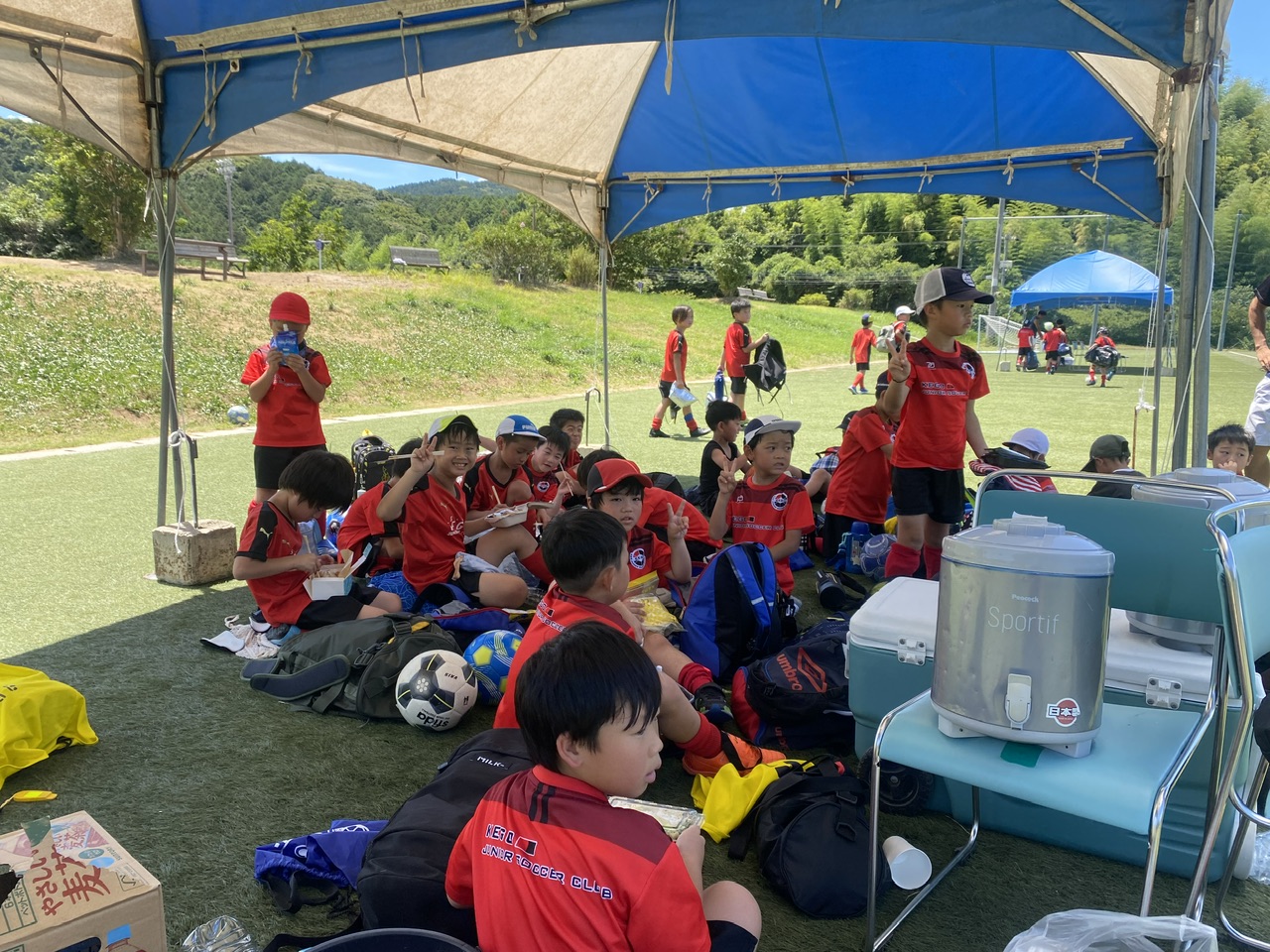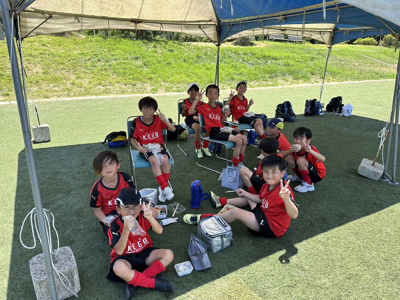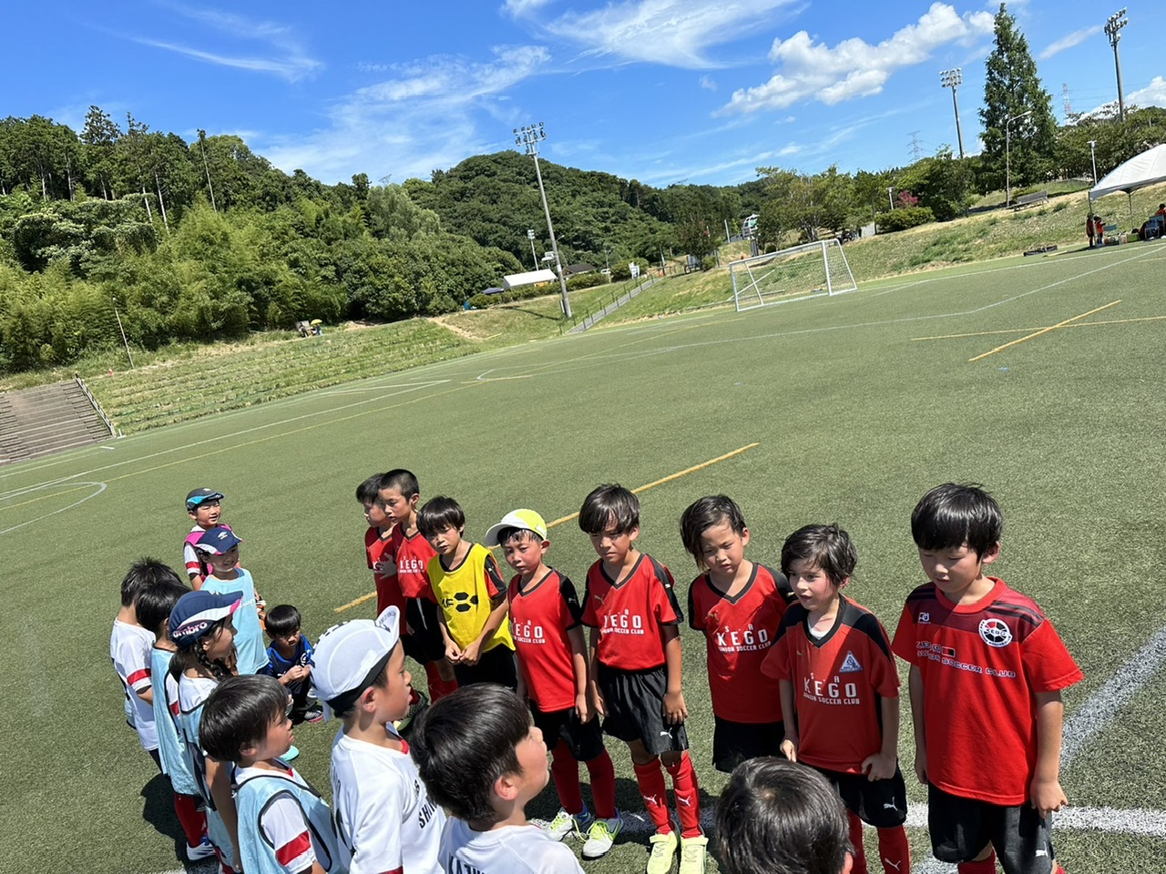 相手チームがU7-9混合チームだったり、多少の年齢差はありましたが、物怖じせずプレー出来ていたね! 勝ったり負けたり、暑い中走り切りました!