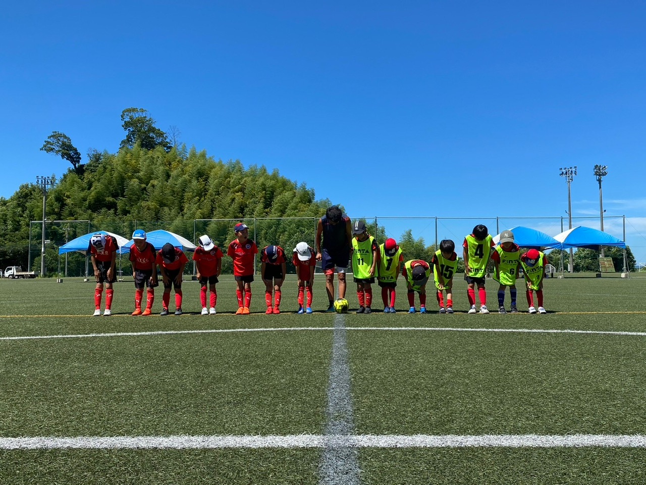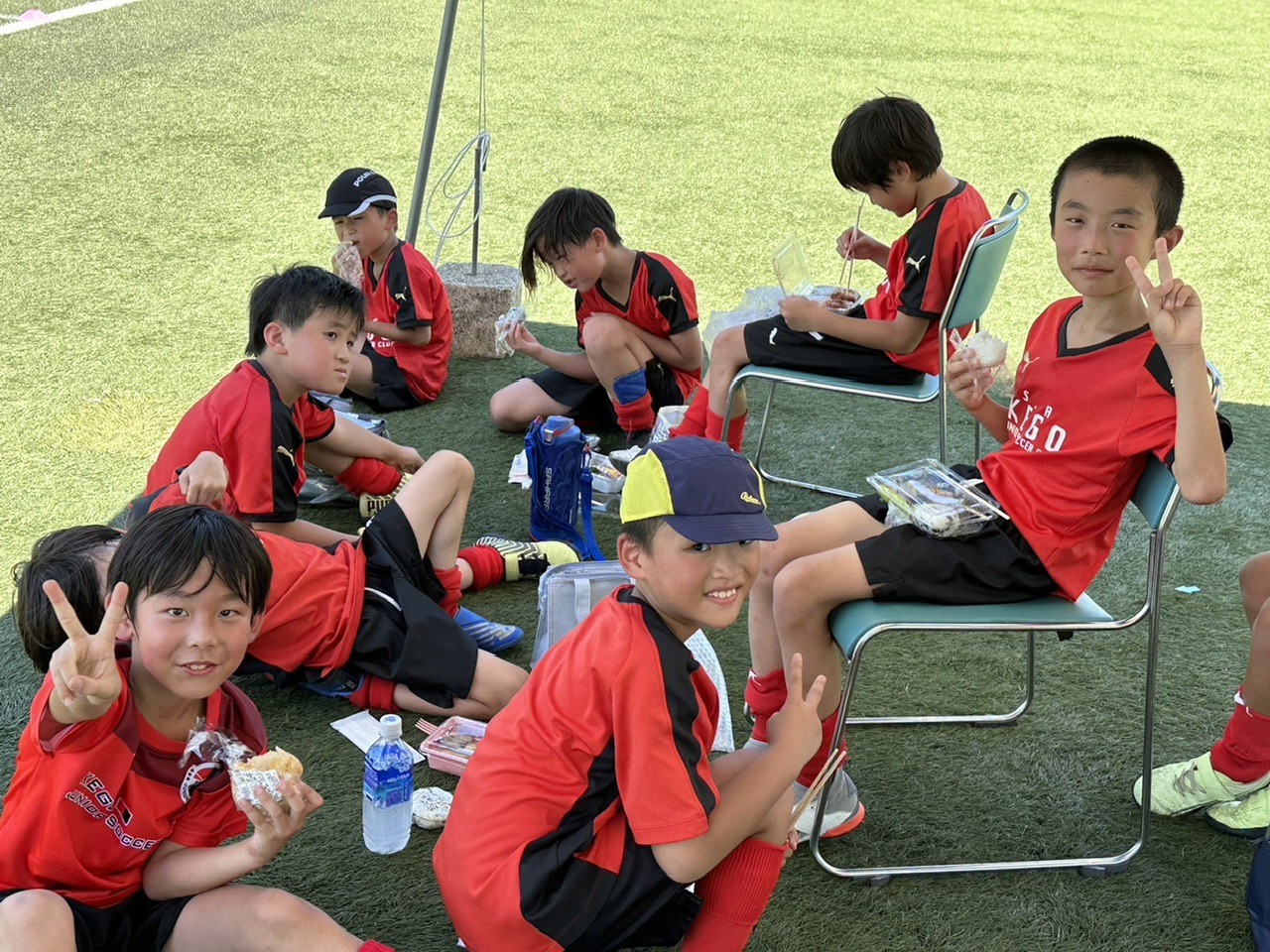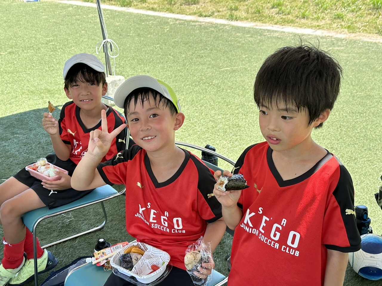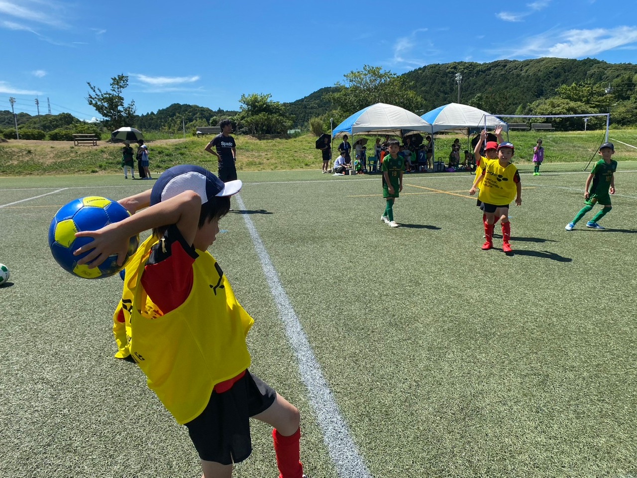 相手チームがU7-9混合チームだったり、多少の年齢差はありましたが、物怖じせずプレー出来ていたね! 勝ったり負けたり、暑い中走り切りました!