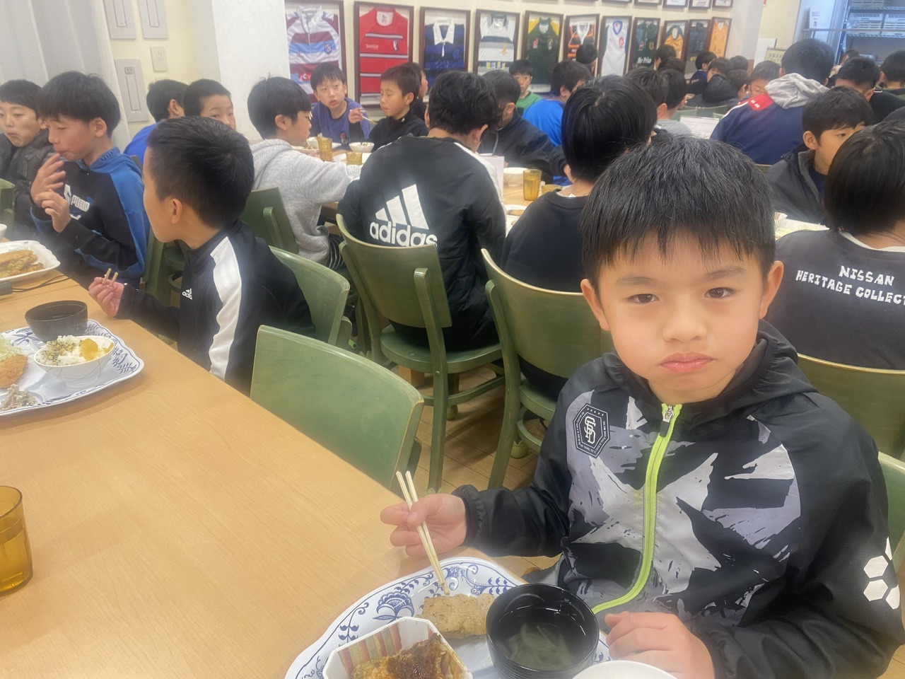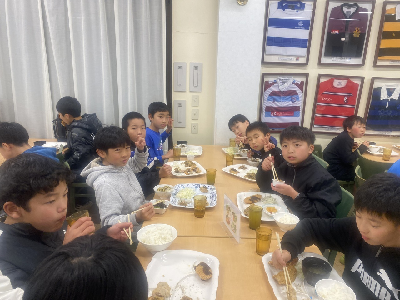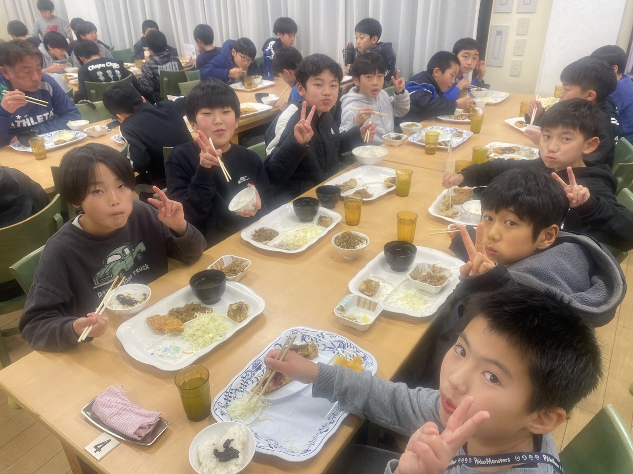 (入浴,食事,洗濯を済ませ、みんなで代表戦を観戦しました!)
