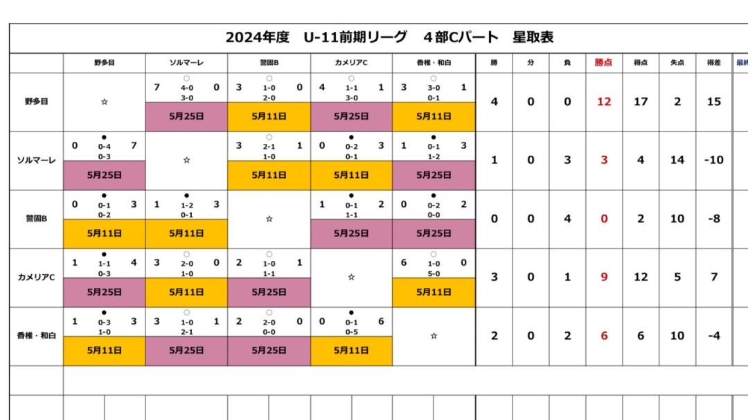 【U11B】福岡地区4部リーグ Cパート 第3・4節